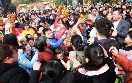 ▲节日期间,宁乡炭河古城景区2019新春大庙会开启。 游客们纷纷选择在新的一年,和家人来到炭河古城迎财神、抢元宝、闹新春,穿越西周过大年!同时,今年春节,不少游客还选择前往密印景区、青铜博物馆、千佛洞、冰雪王国、炭河大马戏等周边景点,感受炭河里文化魅力,热热闹闹过新年。春节期间,炭河古城及周边景区共接待游客超16万人次。 ——喜迎新年—— 体验“年味宁乡”民俗