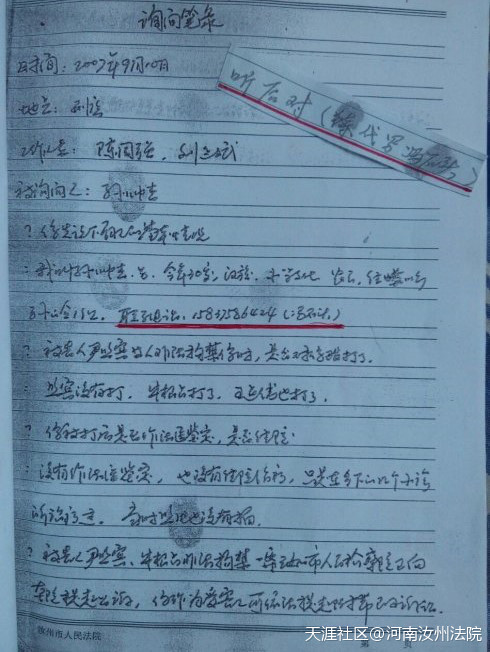 上面这份笔录就是2010年3月2日,王延坡之妻张会云被平顶山中级人民法院审判合议庭的调查笔录。下面再看看王延坡的母亲兰巧,被平顶山中级法院调查的情况!看看汝州市公安局有多么的疯狂.....