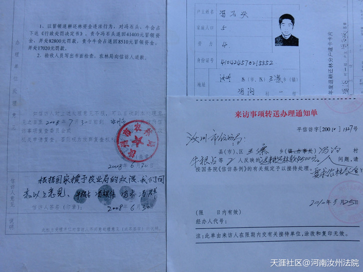 (上面证据就是汝州市农林局对冯石头诈骗退耕还林的处理意见)