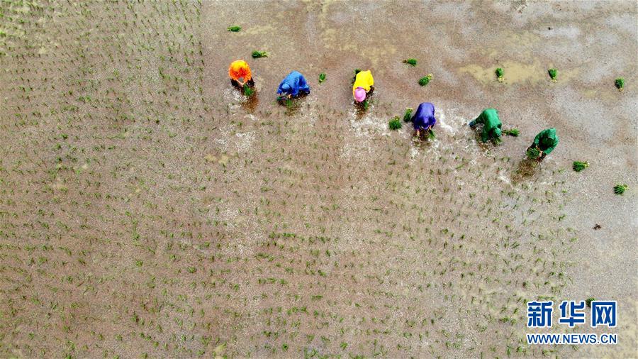 在山西省运城市新绛县周流村,农民在收获的麦田里复播玉米(6月11日摄,无人机照片)。 新华社发 在浙江省杭州市建德市大同镇郎家村的稻田,村民正忙着插秧。夏季是农业用电高峰期,国网建德市供电公司大同供电所的员工这些天的重点工作是检查供电线路。他们对电力线路通道修剪树枝、清理障碍物,对农业专用线路以及设备进行检修维护,叮嘱老乡抽水灌溉时注意用电安全,拉起了农田用电的“安全网”。 稳定粮食生产,秋粮是大头。农业农村部要求各地全力以赴组织农机抢时抢墒播种,扩大适播面积,提高播种质量,特别是抓好双季晚稻面积落实。同时,立足抗灾夺丰收,重点防范东北夏伏旱和早霜、南方洪涝和台风等灾害,抓好草地贪夜蛾、水稻“两迁”害虫等重大病虫防控,跟踪监测沙漠蝗发生动态,做好防治准备。